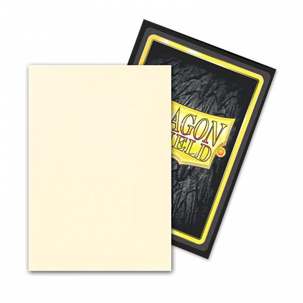 Japanese size Dragon Shield Dual Matte sleeves. Clear front and a textured matte back. Fully opaque sleeves with a black interior, an elegant backdrop for black bordered cards.