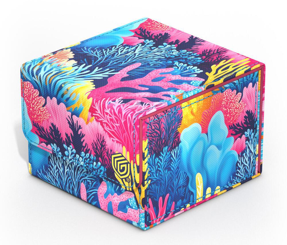 Dive into flourishing underwater worlds with the 2025 Exclusive Sidewinders from Ultimate Guard! The sustainable Coral Places deck boxes are made from 52% recycled materials and, in addition to the durable Xenoskin surface, have a strong magnetic closure and a high-quality microfibre inner lining so that up to 100 (double-sleeved) or 120 (single-sleeved) cards from games such as Magic: The Gathering, Pokémon, Lorcana, One Piece or Yu-Gi-Oh! can be stored safely. The plastic-free packaging is also made entirely from recycled paper and cellulose-based film.